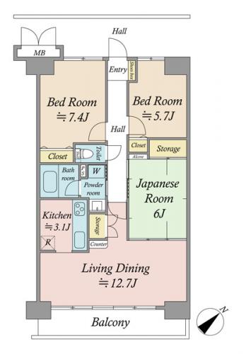 間取り 3LDK 専有面積 75.02m2(22.6坪) 壁芯