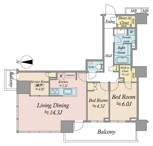 間取り 2SLDK 専有面積 75.76m2(22.9坪) 壁芯