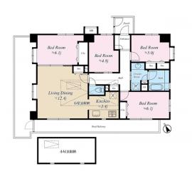 間取り 4LDK 専有面積 84.36m2(25.5坪) 壁芯