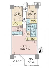 間取り 2LDK 専有面積 85.01m2(25.7坪) 壁芯
