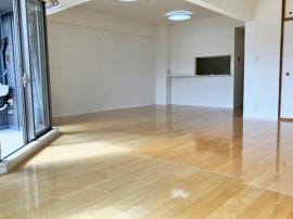 • サンルームから左にバルコニー、約26.8帖大のLDKです