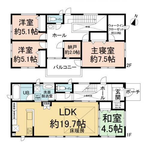 • LDK約19.7帖と和室4.5帖を開口して利用するとお子様の喜ぶ広々空間