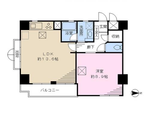 間取り 1LDK 専有面積 54.96m2(16.6坪) 壁芯