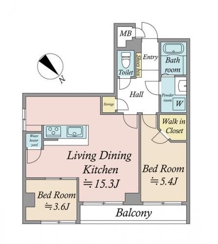 間取り 2LDK 専有面積 56.00m2(16.9坪) 壁芯