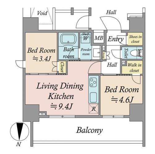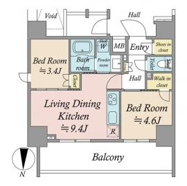 間取り 2LDK 専有面積 41.20m2(12.4坪) 壁芯