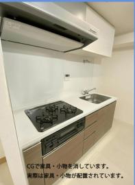 • キッチンには浄水器一体型シャワー水栓、3口の多機能コンロ付きです。