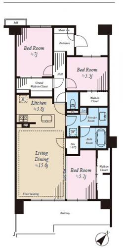 間取り 3LDK 専有面積 90.97m2(27.5坪) 壁芯