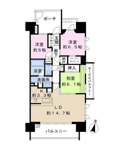 間取り 3LDK 専有面積 81.12m2(24.5坪) 壁芯