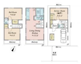 土地面積 51.26m2(15.5坪) 登記簿 別途私道負担42.49m2 建物延面積 77.42m2