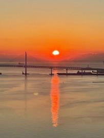 • バルコニーよりベイブリッジ越しに朝日を望む
