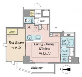 間取り 1LDK 専有面積 46.24m2(13.9坪) 壁芯