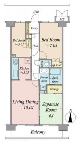 間取り 3LDK 専有面積 64.57m2(19.5坪)