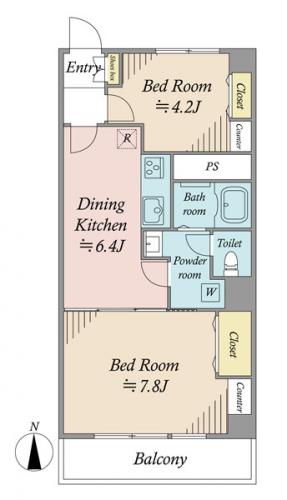 間取り 2DK 専有面積 43.43m2(13.1坪) 壁芯