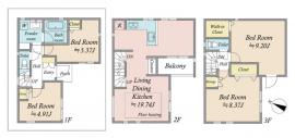 土地面積 67.19m2(20.3坪) 実測 建物延面積 104.63m2