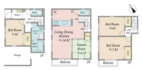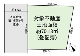 土地面積 70.18m2(21.2坪) 登記簿 別途私道負担195.61m2 建物延面積 93.98m2