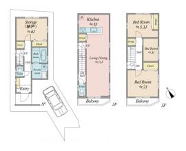 • 2014年9月築 木造3階建 3LDK+1S(納戸)+カースペース