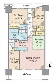 間取り 4LDK 専有面積 90.15m2(27.2坪) 壁芯