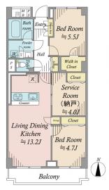 間取り 2SLDK 専有面積 65.58m2(19.8坪) 壁芯