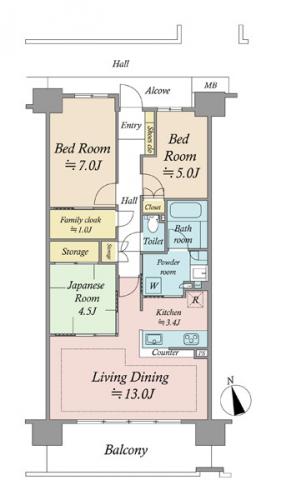 間取り 3LDK 専有面積 75.72m2(22.9坪) 壁芯