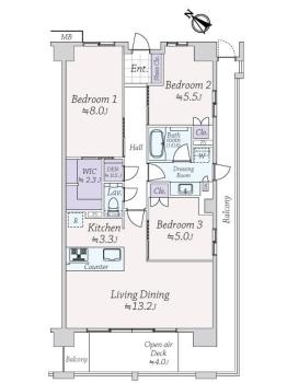 間取り 3LDK 専有面積 80.15m2(24.2坪) 壁芯
