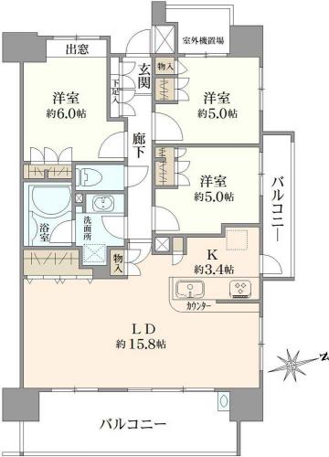 間取り 3LDK 専有面積 76.77m2(23.2坪) 壁芯