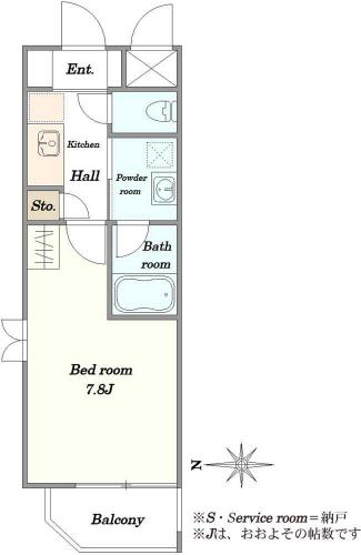 間取り 1K 専有面積 25.82m2(7.8坪) 壁芯
