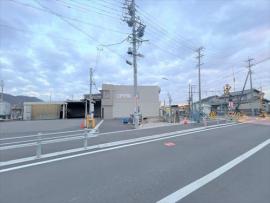 西側前面道路幅員拡幅工事実施中(拡幅予定幅員:約9.75m、完了予定:2027年3月31日)東側道路幅員約4.7m~約5.3m