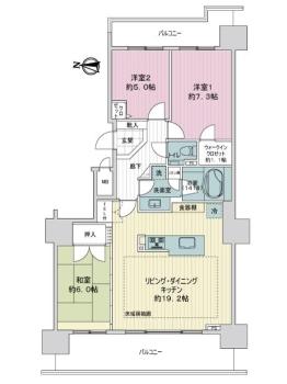 バルコニー 22.12m2 主要採光方向 西