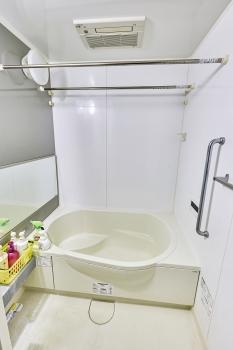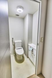 • 手洗いカウンター付きトイレ。手洗いまで完結でき、快適です。