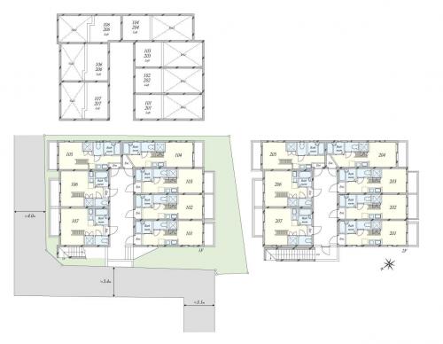 専有面積:14.93m2~15.59m2/住戸数:14戸/設備:都市ガス、公営水道、本下水/エレベーター無セットバック面積:15.21m2/都市計画法他制限:準防火地域、第1種高度地区