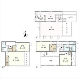 土地面積 105.79m2(32.0坪) 実測 別途私道負担1.55m2 建物延面積 148.07m2