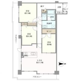 2面バルコニー付き(東向き・南向き)、全居室収納付きの3LDKです。