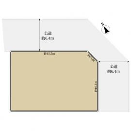 二方 北東約6.4m公道、間口:約15.5m 南東約6.4m公道、間口:約10.1m |