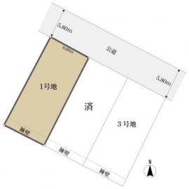 全3区画のうちの1区画「1号地(名称:5B-3)」になり、現況更地の整形地です。