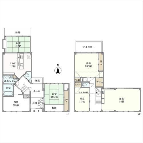 - ■増築未登記部分あり(1階北側和室:13.8㎡、2階南東側洋室18.5㎡、時期不詳)