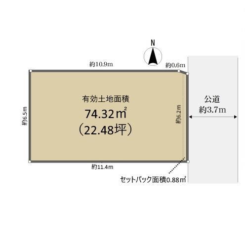土地面積 75.20m2(22.7坪) 実測 (セットバック要約0.9m2