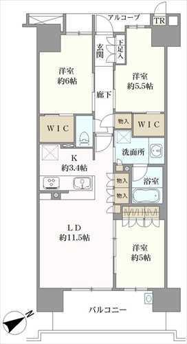 備考 アルコーブ横のトランクルーム(面積0.32㎡)が専有面積に含まれます。