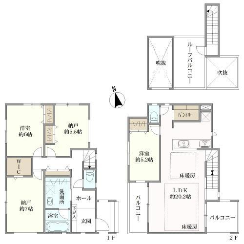 2LDK+2S+WIC(S=納戸、WIC=ウォークインクローゼット)