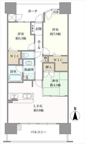 間取り 3LDK 専有面積 76.06m2(23.0坪) 壁芯