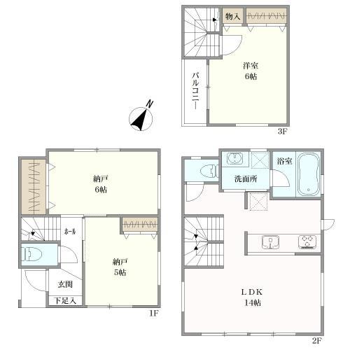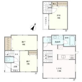 土地面積 57.50m2(17.3坪) 実測 別途私道負担57.57㎡(持分6分の1) 建物延面積 72.37m2