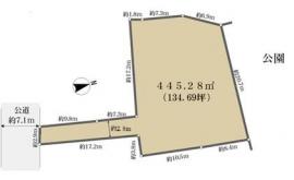 □敷地面積(実測)445.28平米(134.69坪)です。