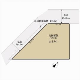 土地面積 169.30m2(51.2坪) 実測 別途私道負担約1.7m2 (セットバック要)