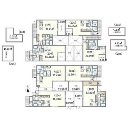 各住戸(居住用)の専有面積 最小面積:28.05㎡~最大面積:39.45㎡
