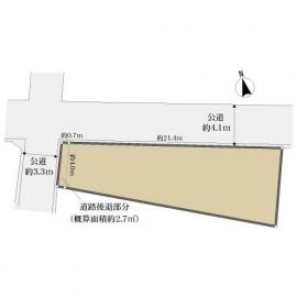 角地 北東約4.1m公道、間口:約21.4m 北西約3.3m公道、間口:約4.0m |