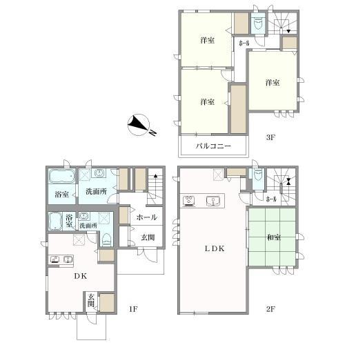 ★3階洋室は、レール式引き戸区切りで一体利用、分割利用が可能