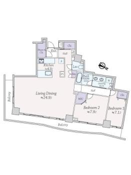 間取り 2LDK 専有面積 102.07m2(30.8坪) 壁芯