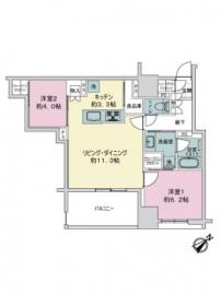間取り 2LDK 専有面積 60.37m2(18.2坪) 壁芯