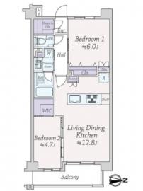 間取り 2LDK 専有面積 54.01m2(16.3坪) 壁芯