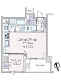 間取り 1LDK 専有面積 38.14m2(11.5坪) 壁芯