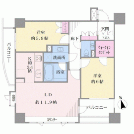 間取り 2LDK 専有面積 63.37m2(19.1坪) 壁芯